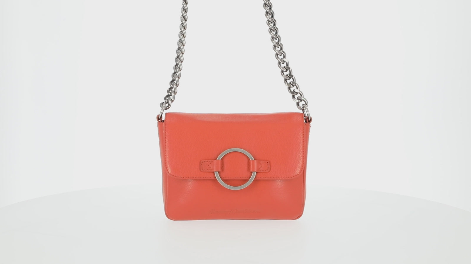 Elevate your style with the Harley-Davidson Women's Crossbody Purse. Made from premium pebble leather, this purse offers a classic yet edgy look. The magnetic flap closure keeps your belongings secure while the chain and leather shoulder strap add a touch of sophistication. Stay organized with the interior back zipper pocket and slip pocket. Size: 8" x 6" x 2".