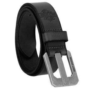 Harley-Davidson Women's Heat Embossed Studded Logo Genuine Leather Belt, Black BMW014B