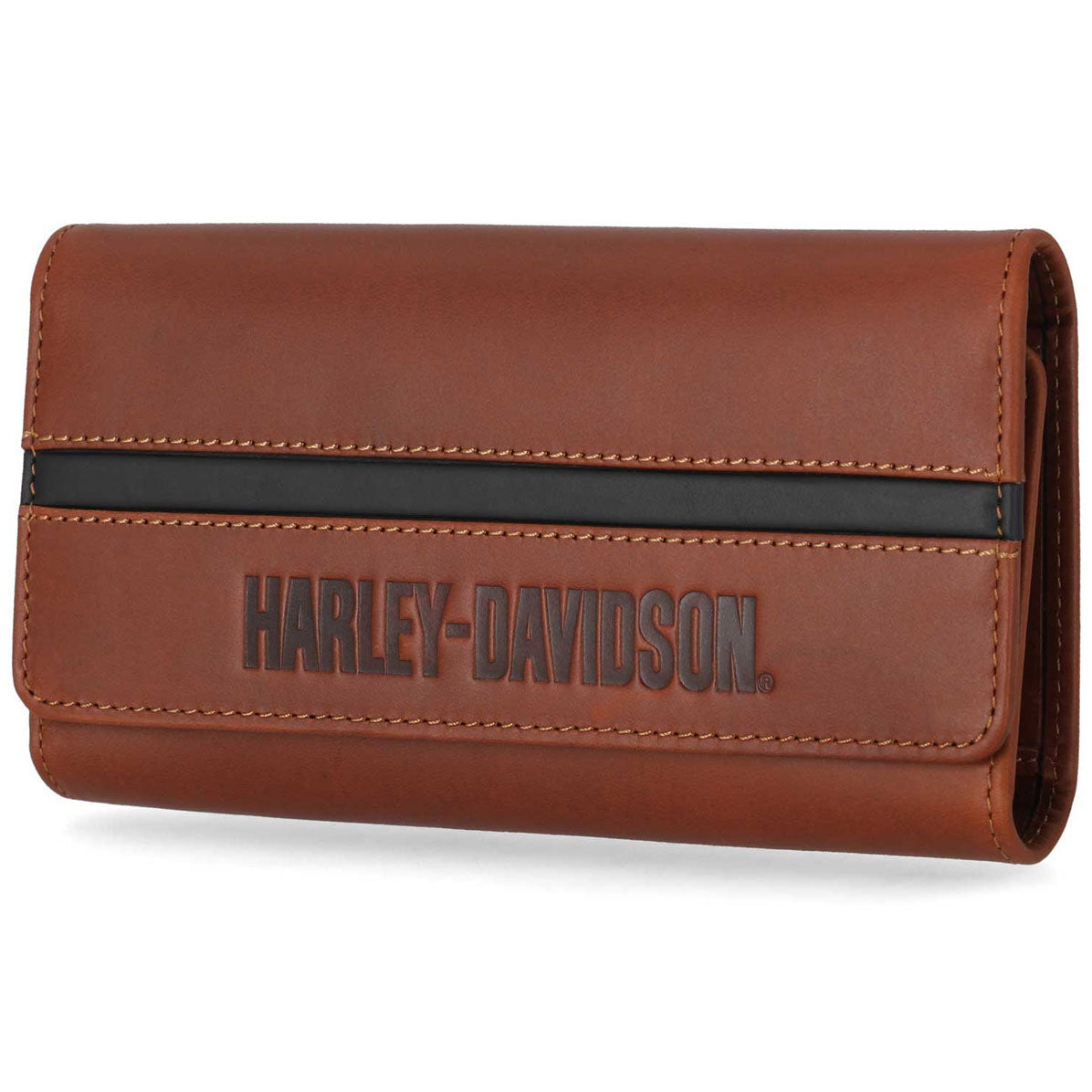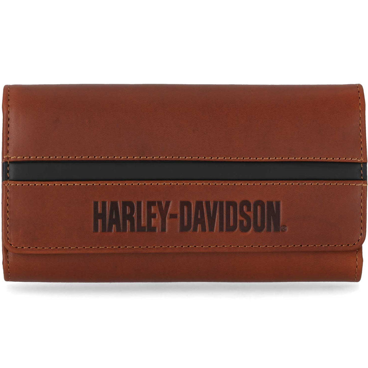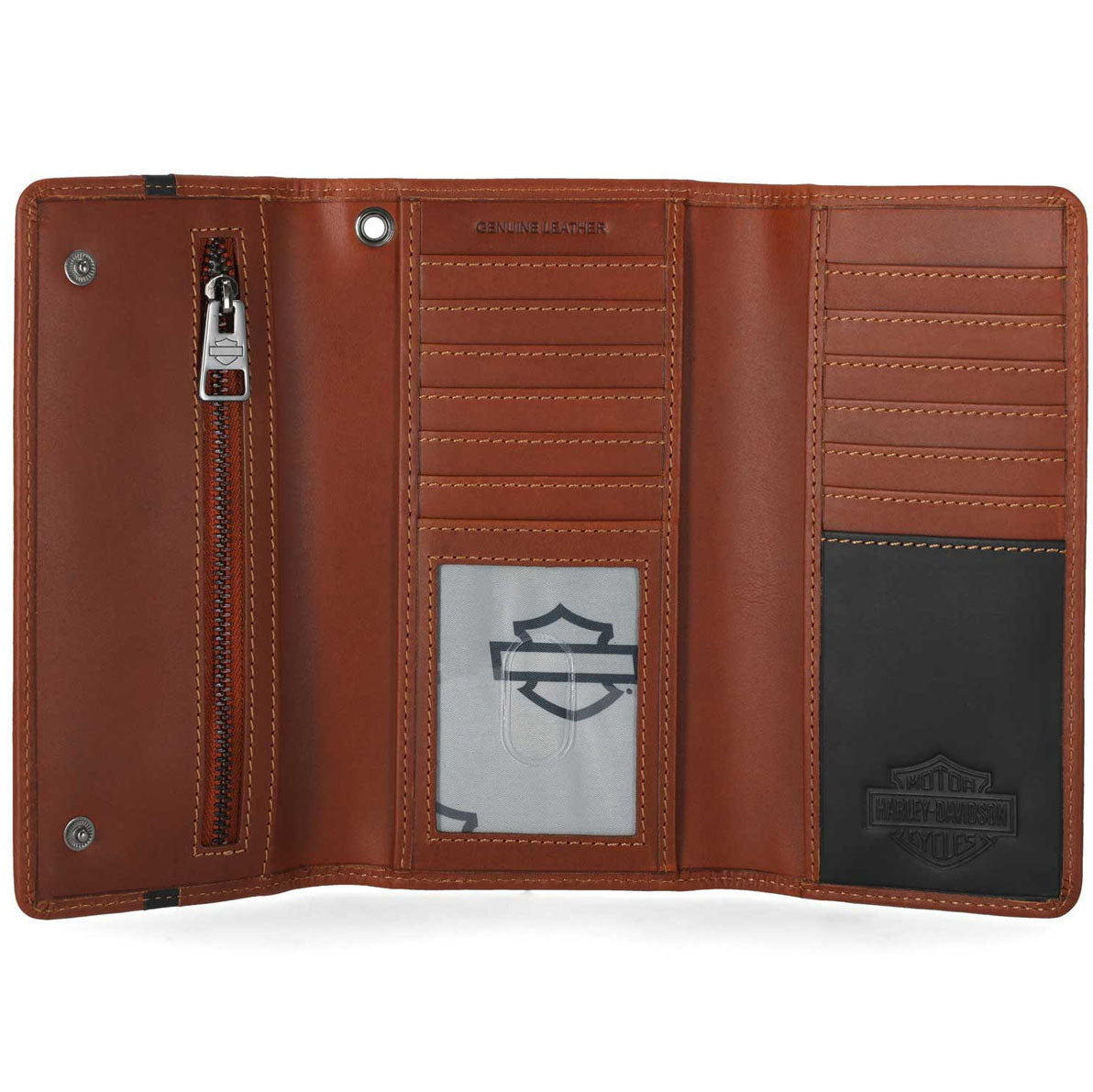 Harley-Davidson Men's H-D Center Block Genuine Leather Trucker Wallet, Cognac Brown MWM089/35