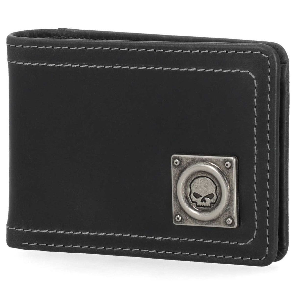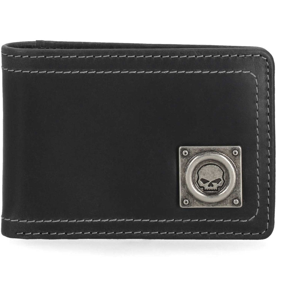 Harley-Davidson Men's Willie G Skull Stitch Front Pocket Leather Wallet, Black MWM100/08