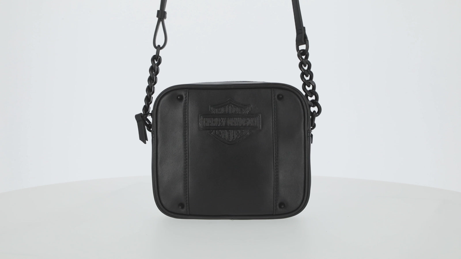 Elevate your style with the high-quality smooth nappa leather Harley-Davidson Women's Bar & Shield Cone Stud Multi-Use Purse. Its versatile chain and leather shoulder strap and top zipper entry make it perfect for any occasion. Stay organized with the interior back zipper pocket. Size: 7" x 6" x 2".