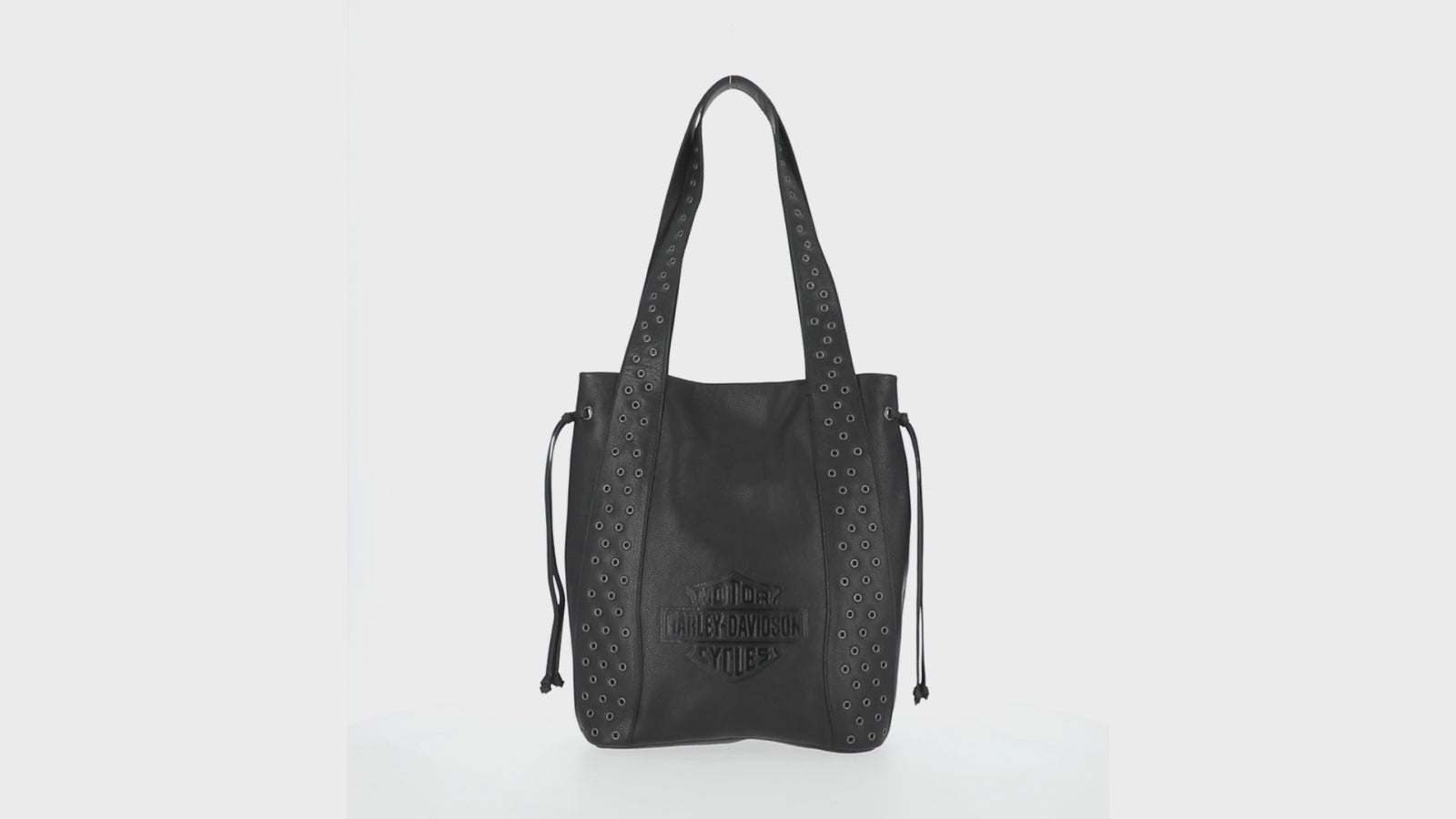Harley-Davidson Women's Embossed B&S Logo Eyelet Top Zipper Tote Bag, Black MHW125/08