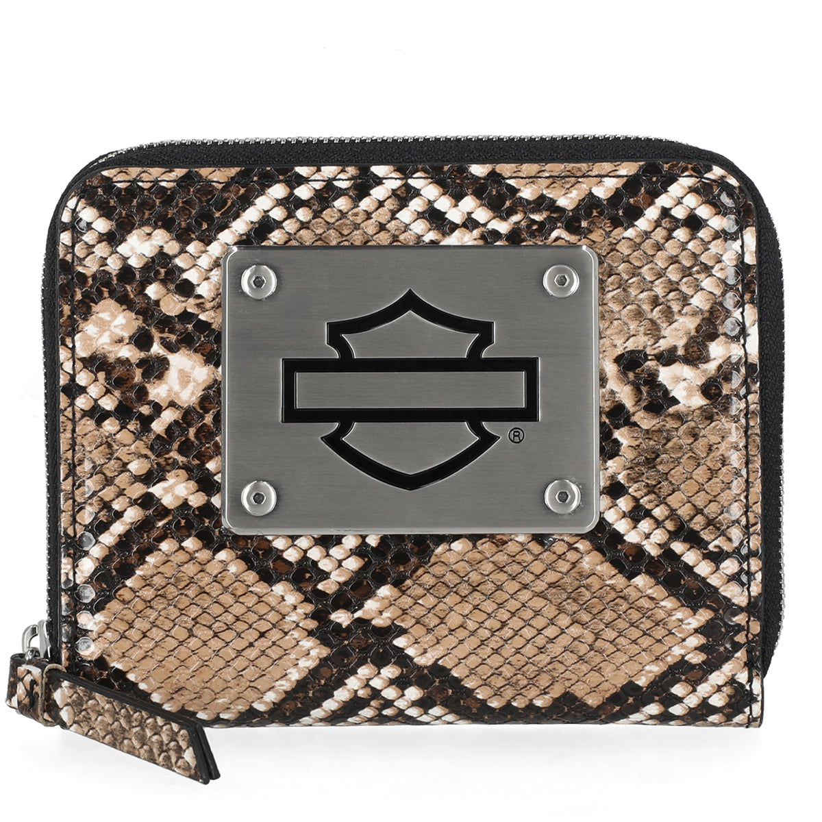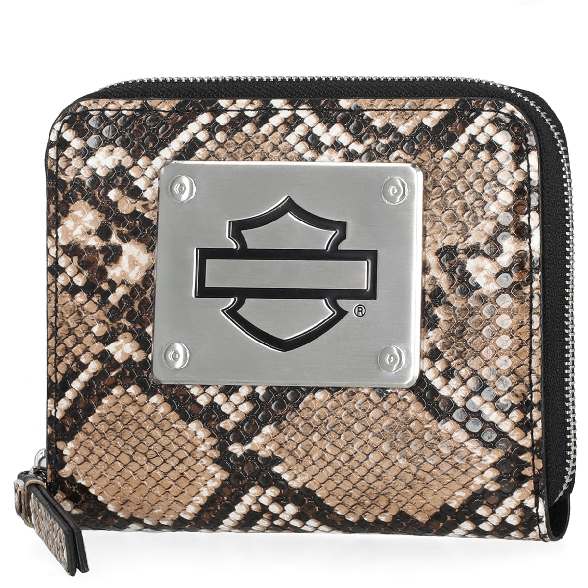 Harley-Davidson Women's Python Print B&S Logo RFID Zip Around Wallet, Brown MWW062/01