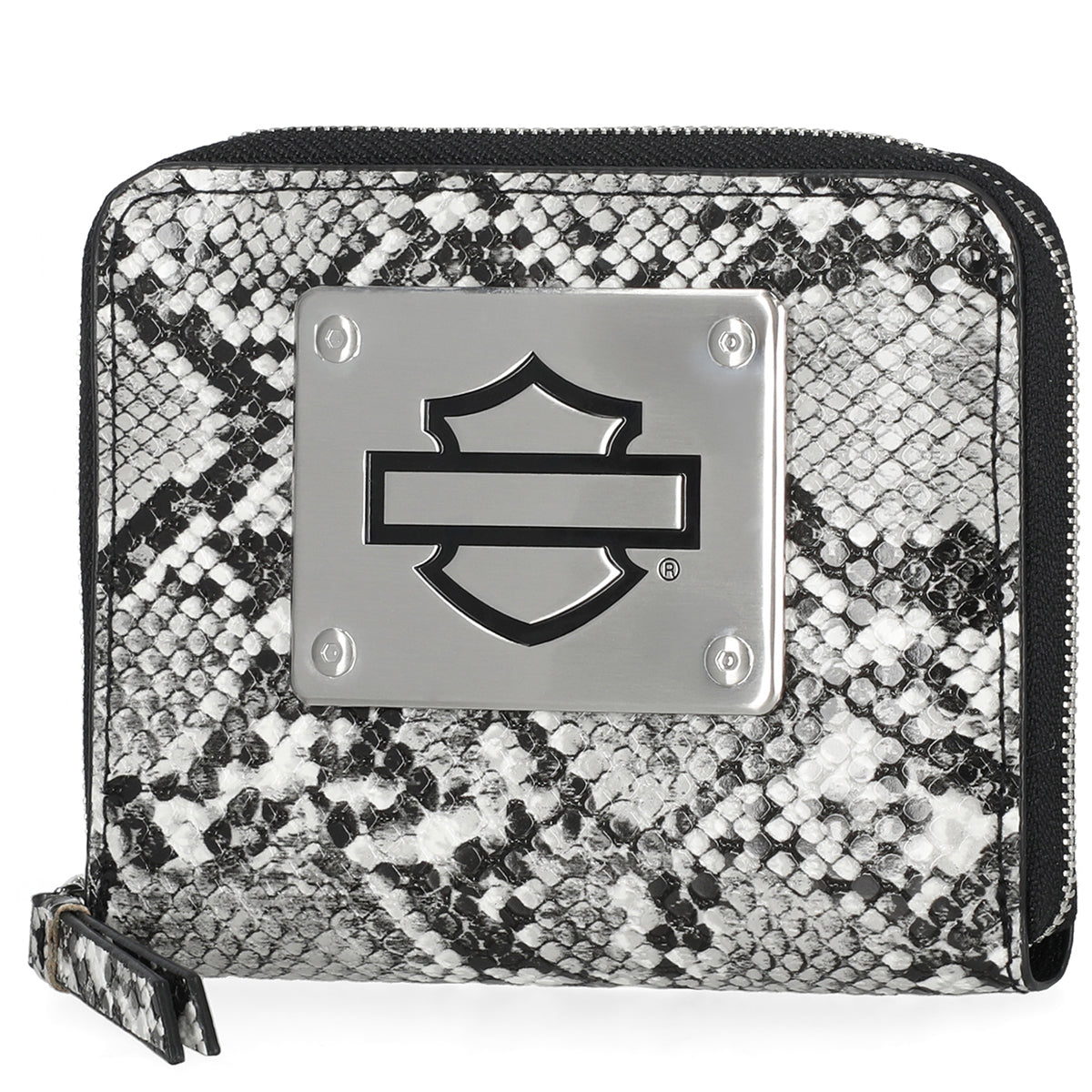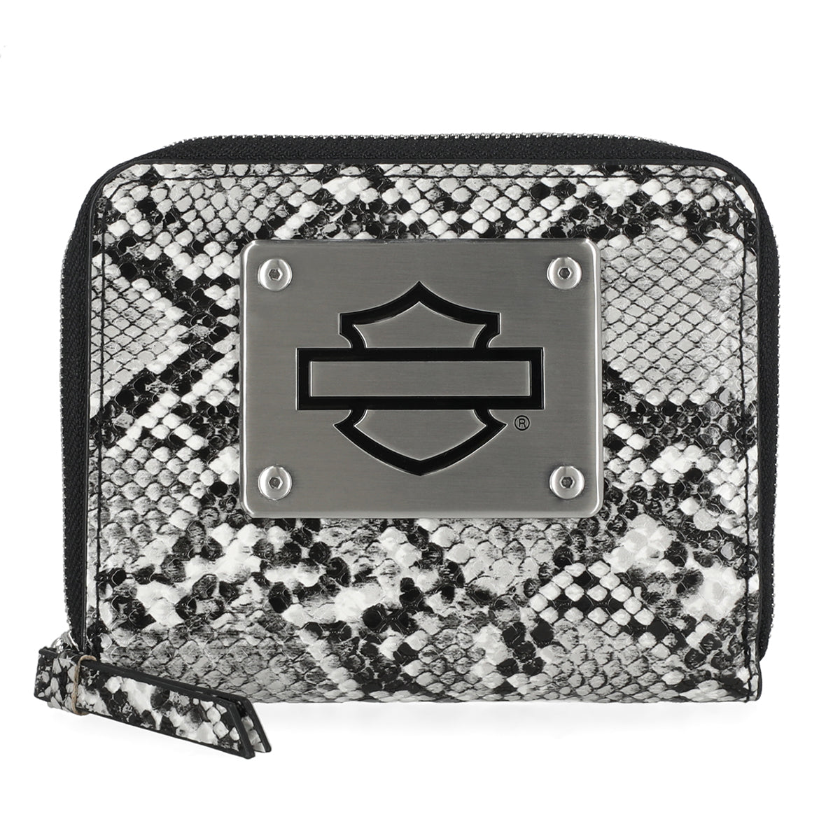 Harley-Davidson Women's Python Print B&S Logo RFID Zip Around Wallet, Black MWW062/01