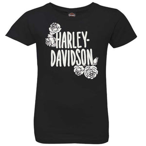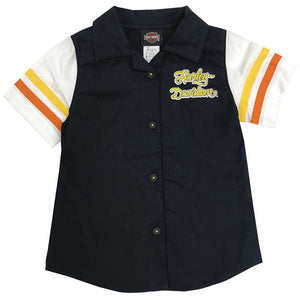 Harley-Davidson Little Girls' Bar & Shield Poplin Pit Button Crew Shirt - Black