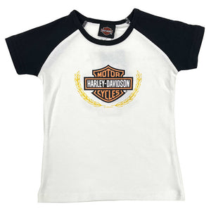 Harley-Davidson Little Girls' Racing Raglan Short Sleeve Toddler Tee - White
