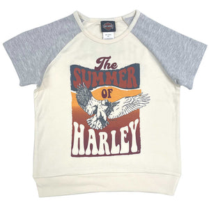 Harley-Davidson Big Girls' Relaxed Fit Short Sleeve Knit Tee - Cream & Gray