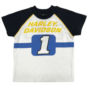 Harley-Davidson Little Boys' Racing Short Sleeve Raglan Toddler Tee - White