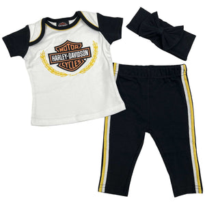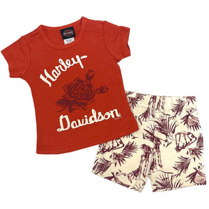 Harley-Davidson Baby Girls' 2 Piece Newborn Short Sleeve Tee & Bike Short Set - Orange & Beige