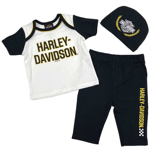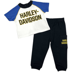 Harley-Davidson Baby Boys' 2-Piece Infant Race Knit Short Sleeve & Pant Set - White, Blue & Black