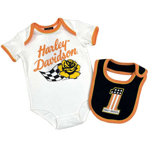 Harley-Davidson Baby Girls' Racing Rose Newborn Creeper & Bib Gift Set - White