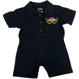 Harley-Davidson Baby Girls' Racing Rose Knit Button Collar Romper - Black