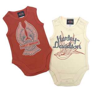 Harley-Davidson Baby Girls' 2-Pack Infant Rib Bodysuit Creeper Set- Orange/Cream