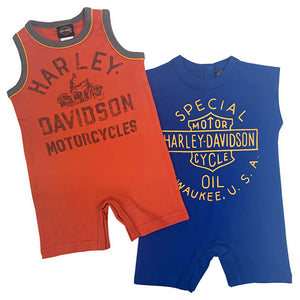 Harley-Davidson Baby Boys' 2-Pack Infant Sleeveless Romper Set - Orange & Blue