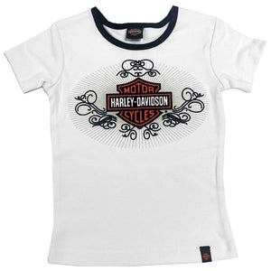 Harley-Davidson Little Girls' Felt Bar & Shield Short Sleeve Rib Tee - White