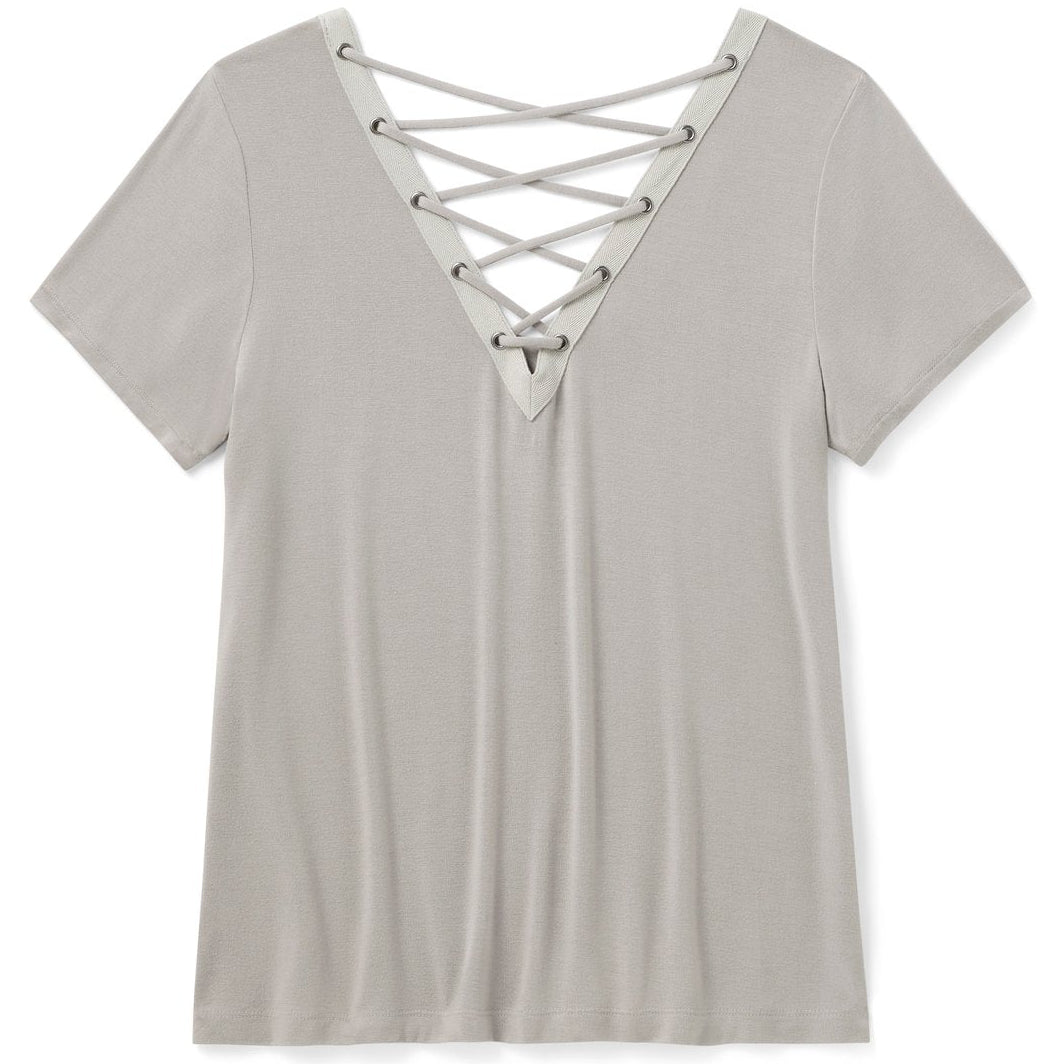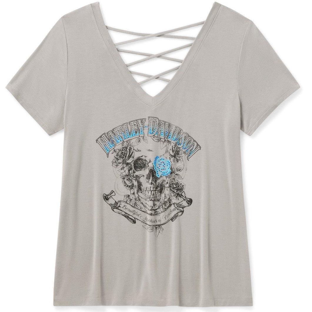Harley-Davidson Women's Bling Laced Back Short Sleeve Shirt, Ghost Grey 96648-25VW