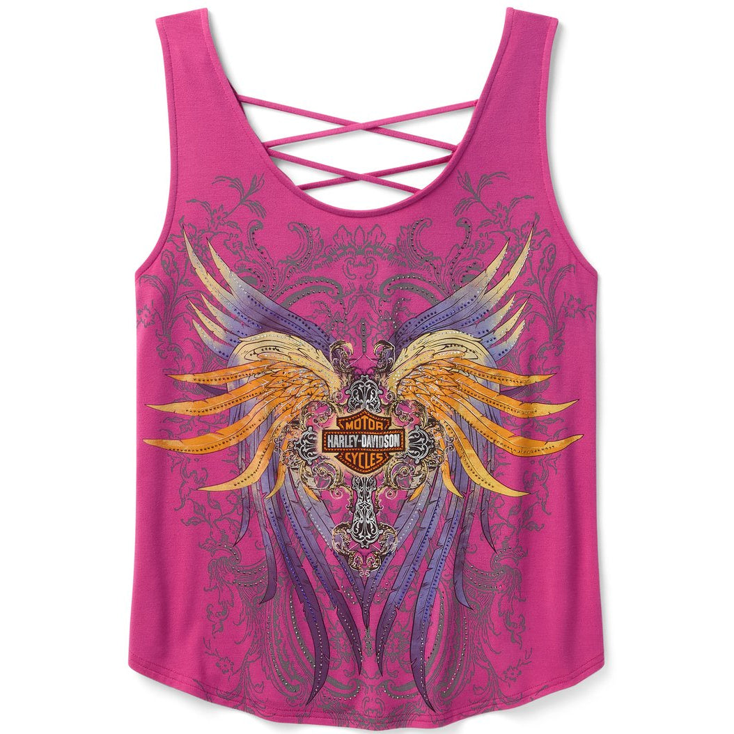 Harley-Davidson Women's Bling Laced Back Sleeveless Tank, Fuchsia 96626-25VW
