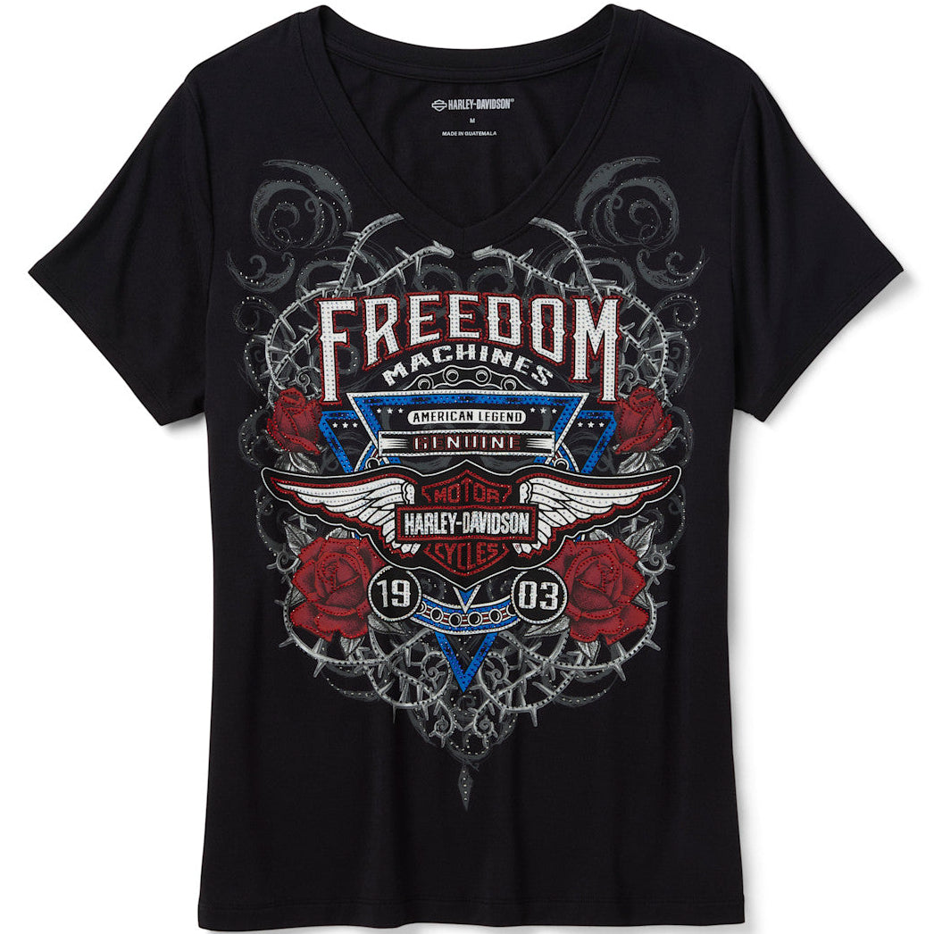 Harley-Davidson Women's Bling Highway Rider Embellished Short Sleeve Shirt, Black 96364-26VW