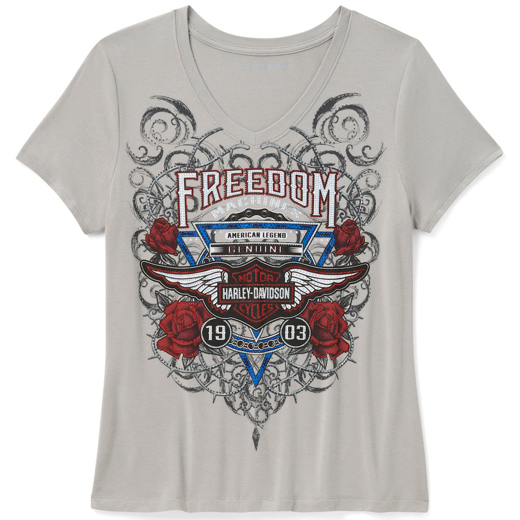Harley-Davidson Women's Bling Highway Rider Embellished Short Sleeve Shirt, Ghost Grey 96363-26VW