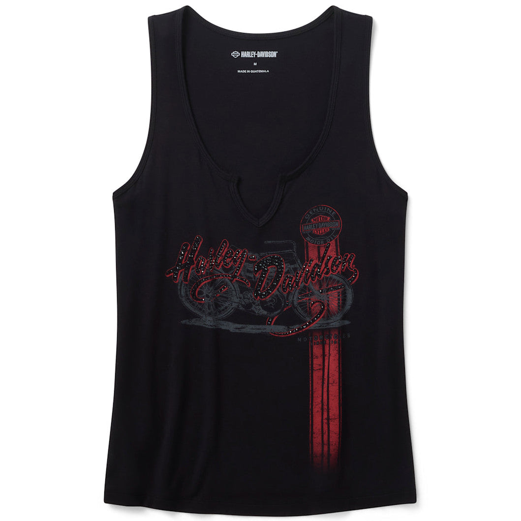 Harley-Davidson Women's Bling Rally N Ride Embellished Notch Neck Sleeveless Shirt, Black Tank 96358-26VW