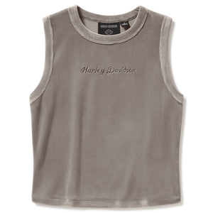 Harley-Davidson Women's Velour Crew Neck Sleeveless Shirt, Cinder Grey Tank 96847-25VW