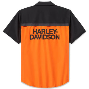 Harley-Davidson Men's Bar & Shield Hodded Button-Up Long Sleeve Shirt Jacket, Orange/Black 96808-25VM