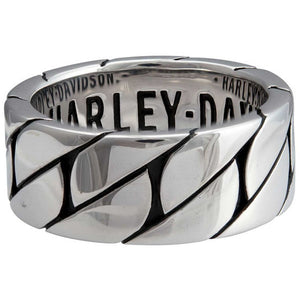 Harley-Davidson Men's Flat Chain Thick Band Ring - Silver Stainless Steel, HSR0113