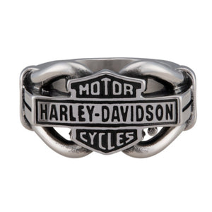 Harley-Davidson Men's Flat Chain Thick Band Ring - Silver Stainless Steel, HSR0113