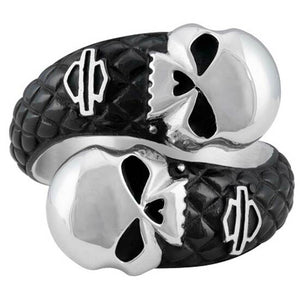 Men's Double Willie G Skull B&S Stainless Steel Metal Ring HSR0085