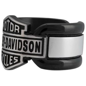 Harley-Davidson Men's Bar & Shield Steel Cable Band Stainless Steel Ring, Black 34R00516