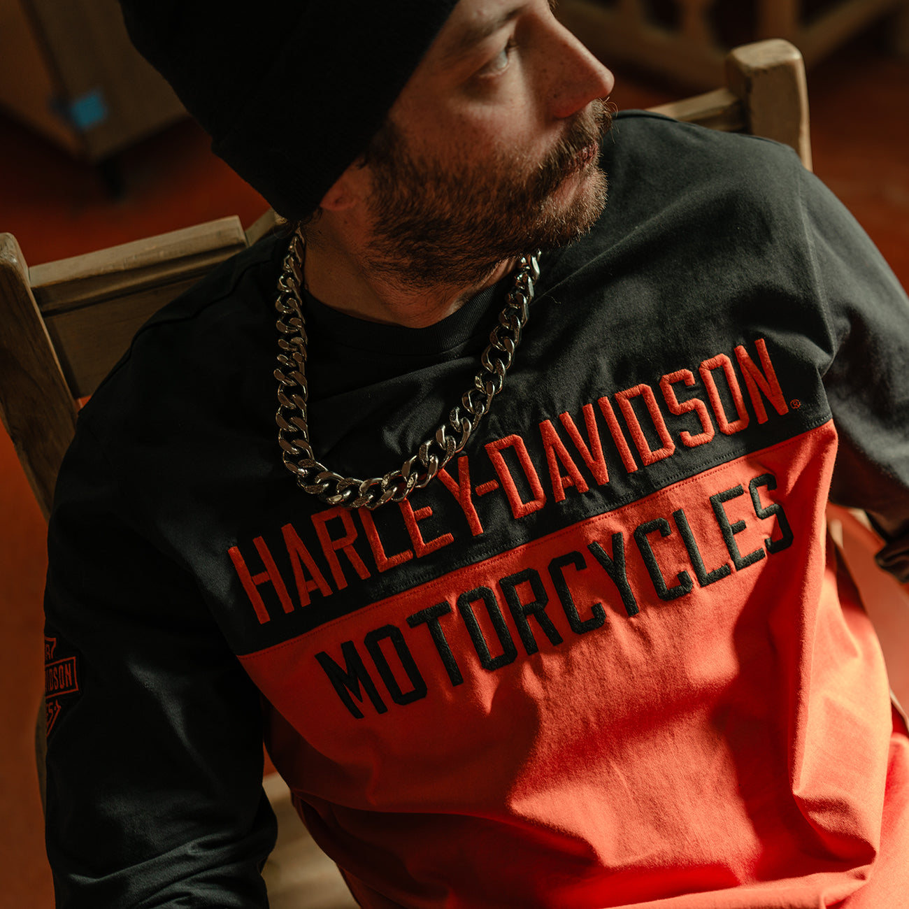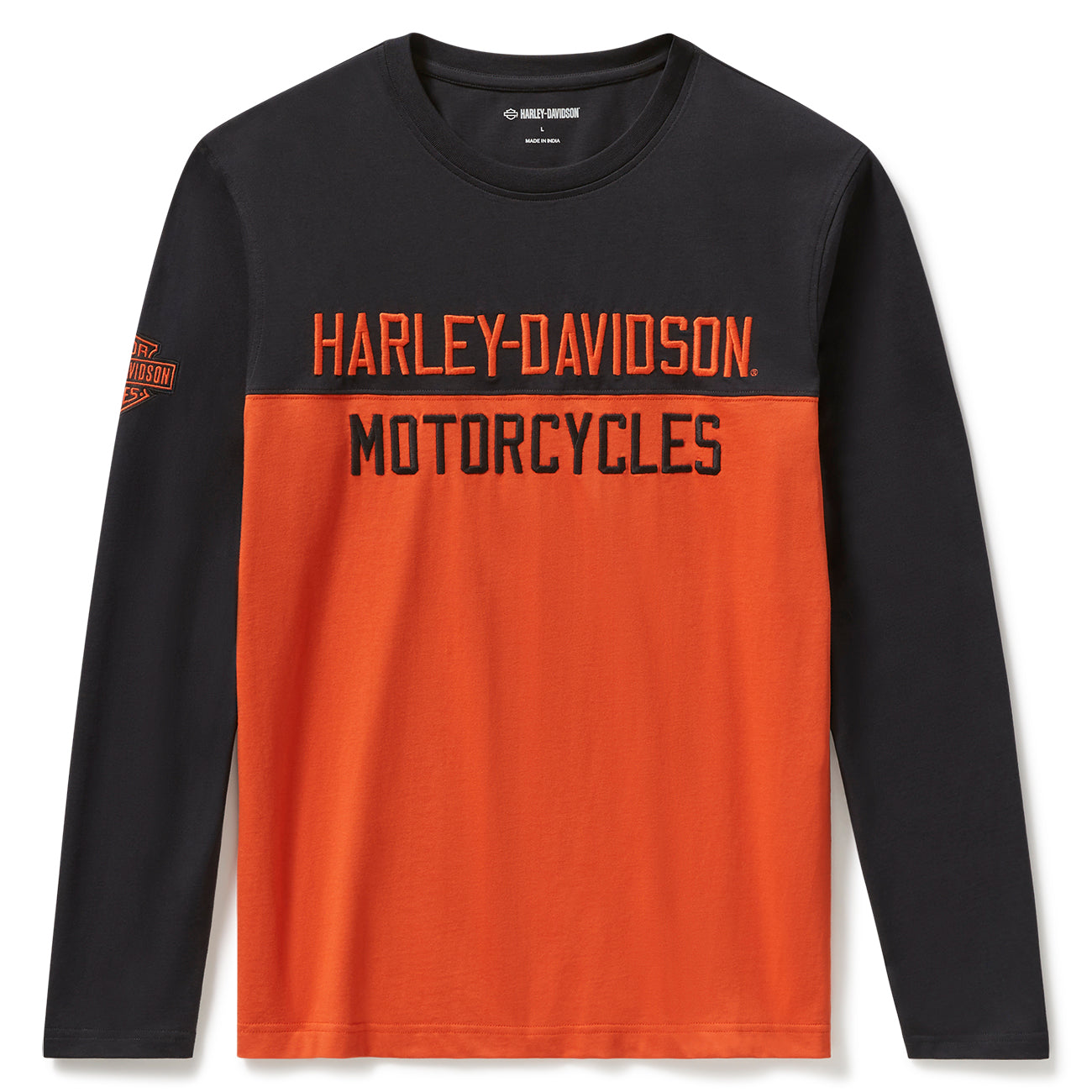 Harley-Davidson Men's Essential Colorblock Long Sleeve Shirt, Orange/Black 96800-25VM