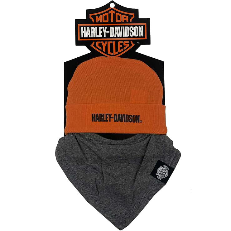 Harley-Davidson Baby Newborn Boys' Beanie & Handkerchief Set, Gray/Orange 7253505