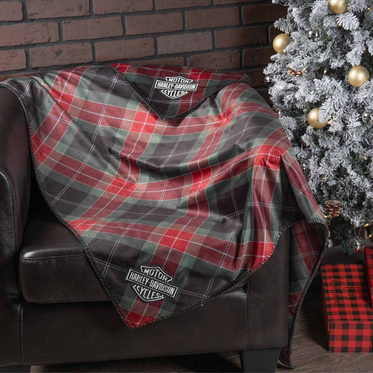Wrap yourself in Harley-Davidson holiday spirit with this festive plaid blanket. Measuring 50" x 60", this cozy polyester throw features the iconic embroidered Bar & Shield logo, making it the perfect seasonal accent for any rider's home. Ideal for chilly nights by the fire or draping across your favorite chair, this durable blanket combines comfort with authentic H-D style. Easy care—simply machine wash warm and tumble dry. Celebrate the season in true motorcycle tradition.