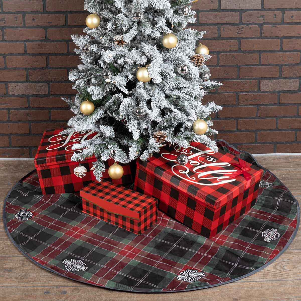 Harley-Davidson Holiday Soft 48" Christmas Tree Skirt, Red/Green Plaid HDX-99350