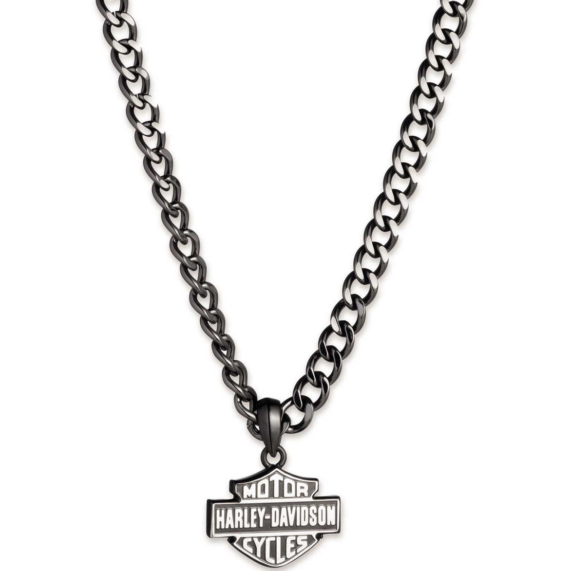 Harley-Davidson Men's B&S Stud 24" Pendant Stainless Steel Necklace, Black 34N00277