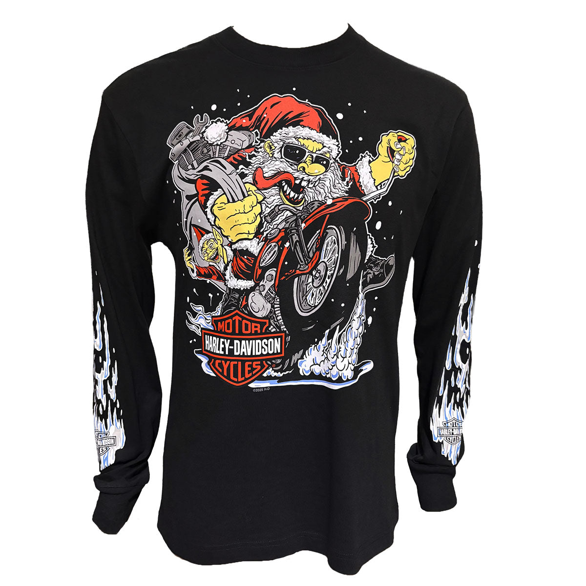 Harley-Davidson Men's Christmas Speed Santa Long Sleeve Shirt, Black