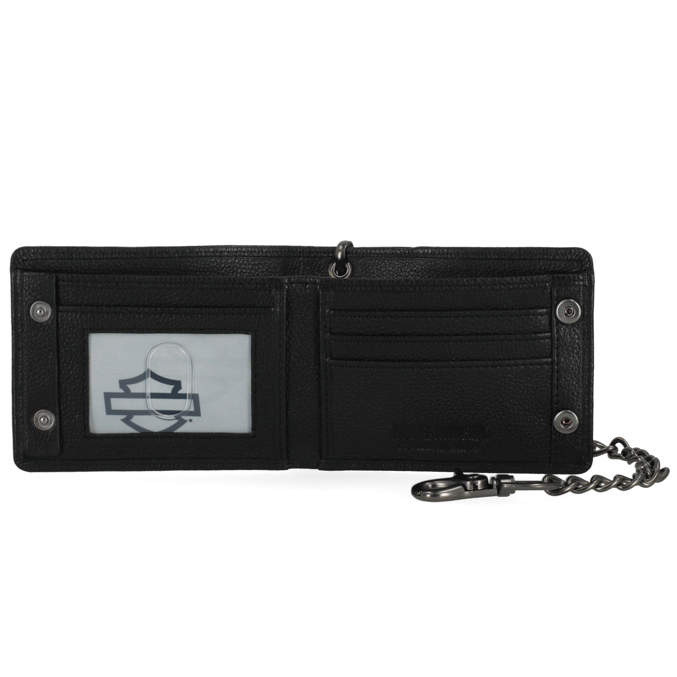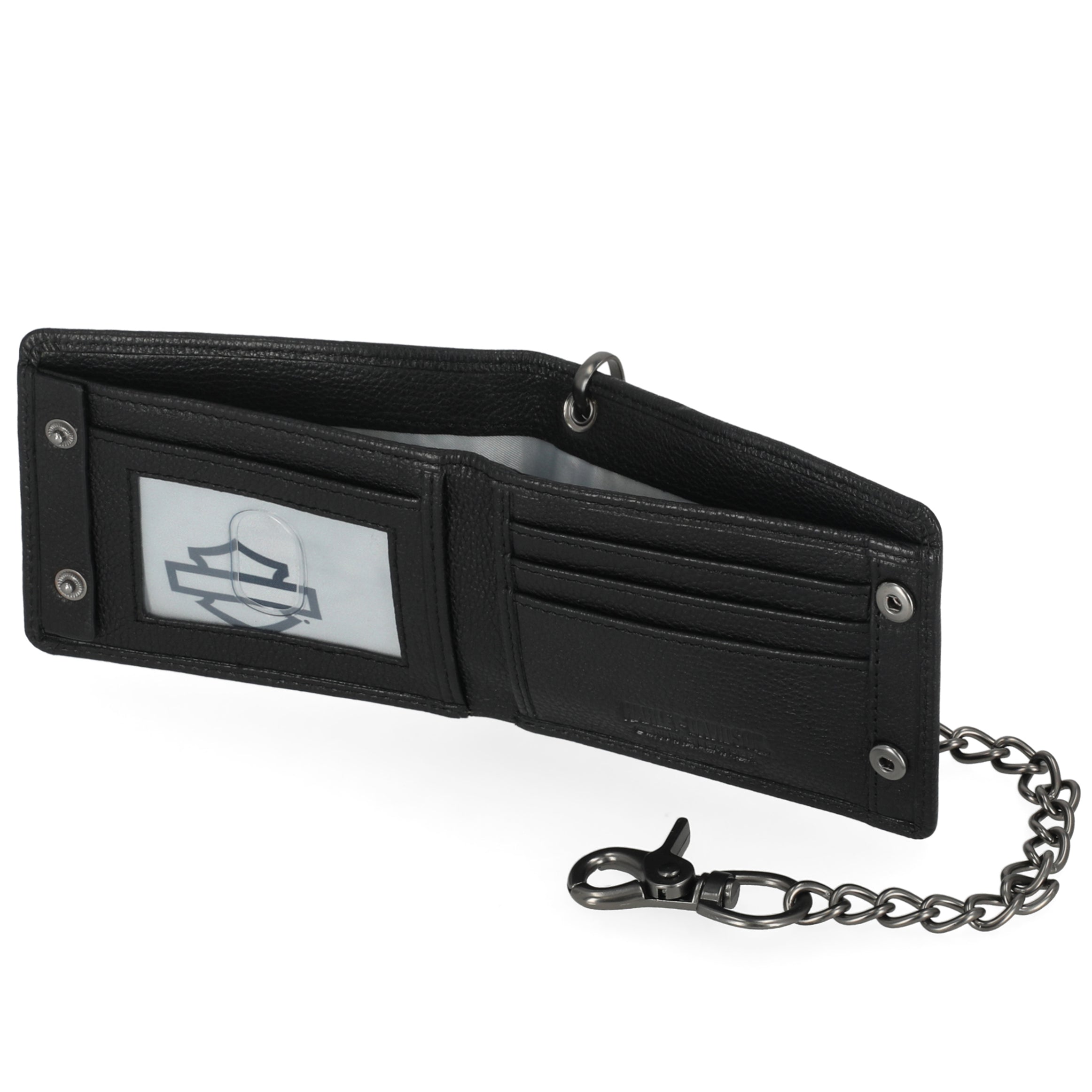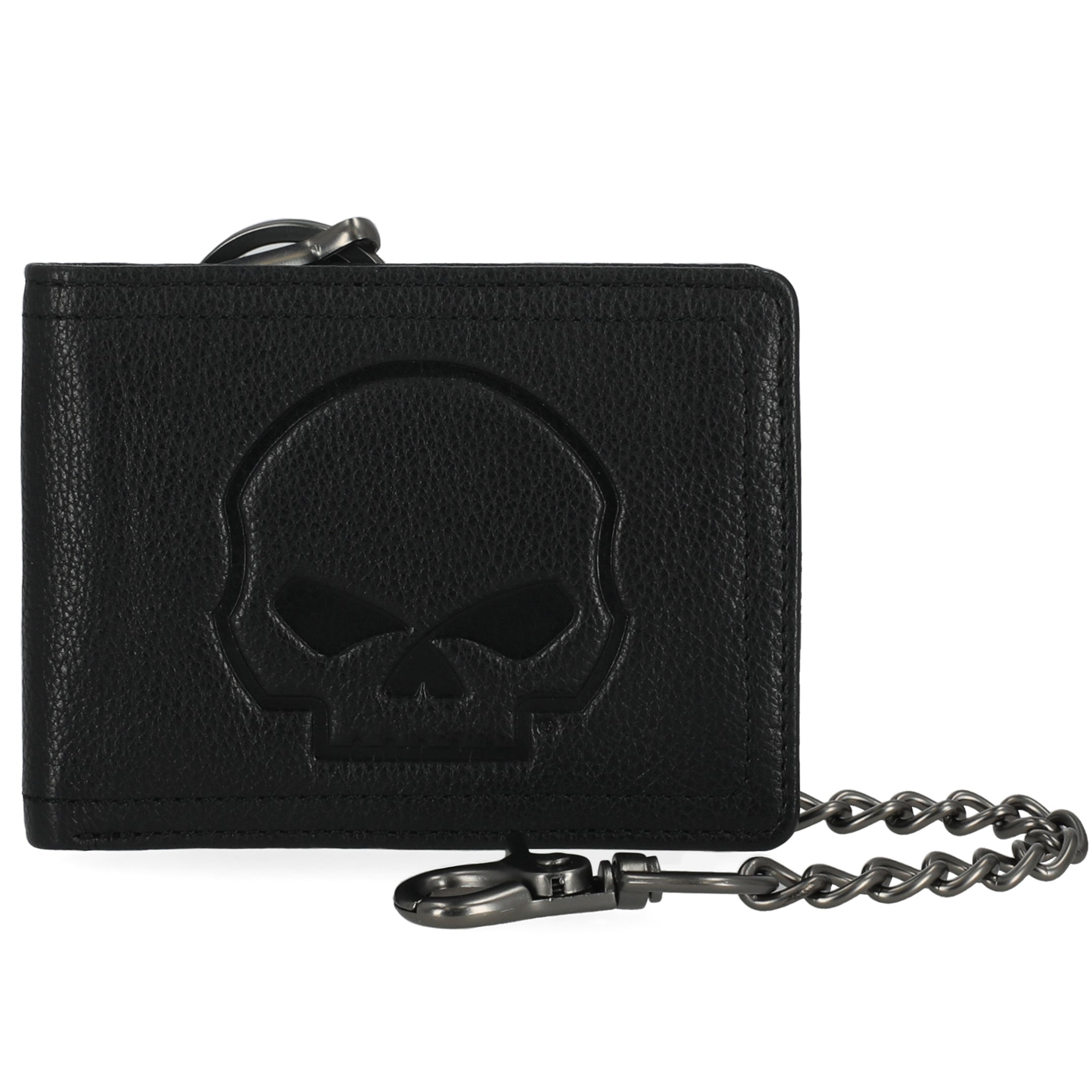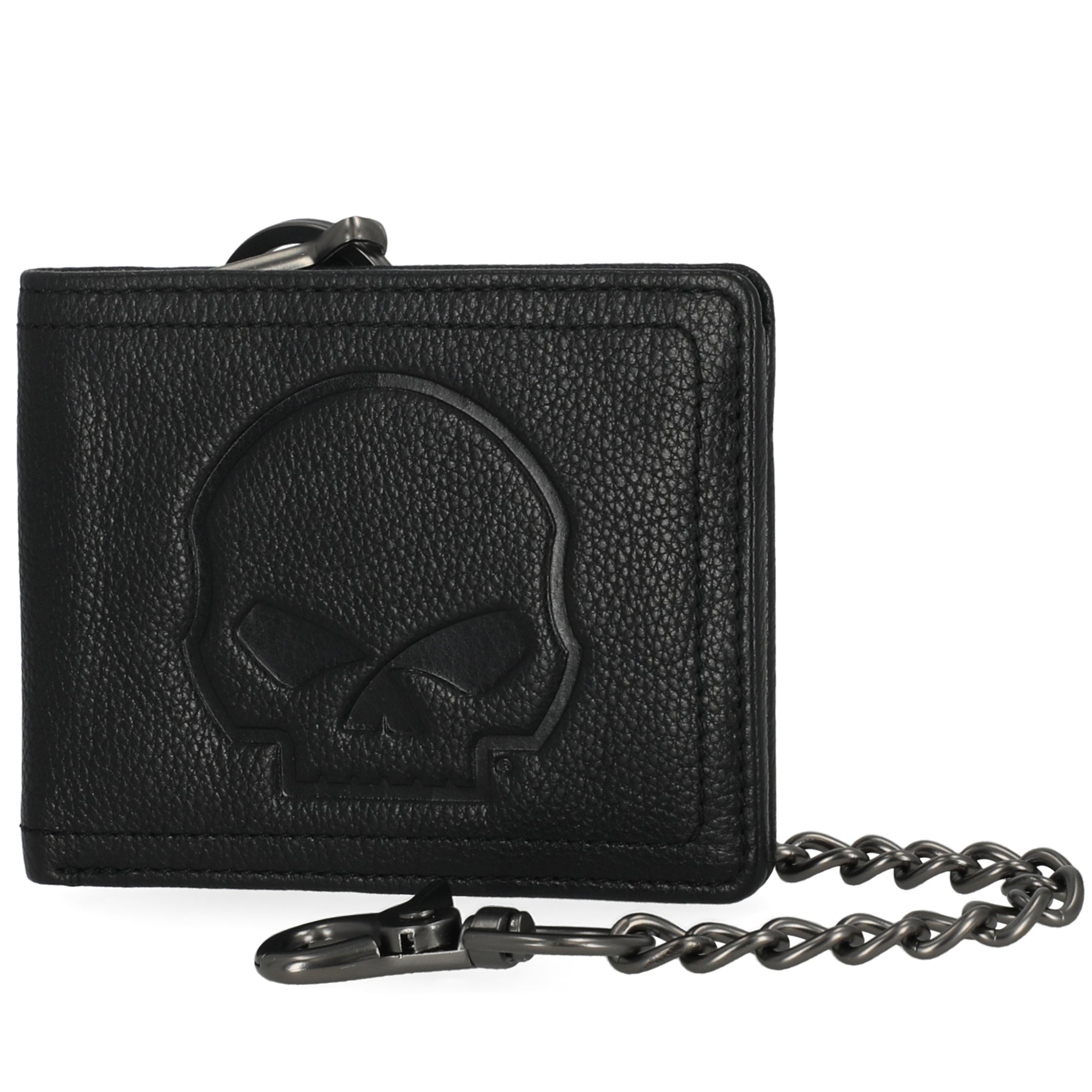 Harley-Davidson Men's Embossed Willie G Skull Genuine Leather Billfold Chain Wallet, Black MWM116/08