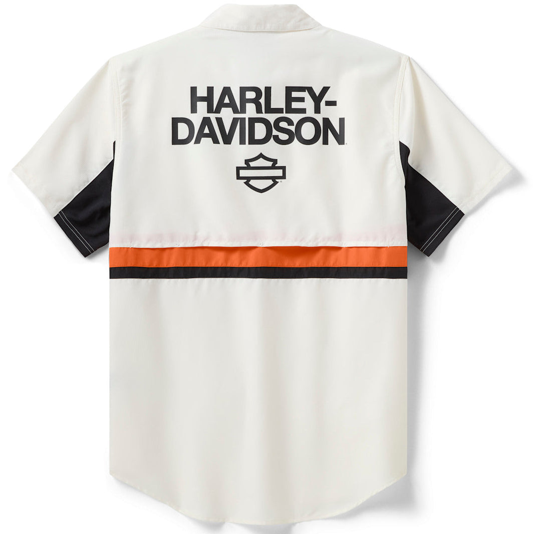 Harley-Davidson Men's H-D TECH Vented Button-Up Short Sleeve Shirt, White 96293-26VM