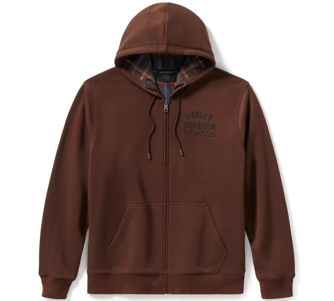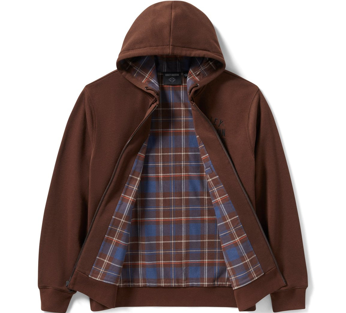 Harley-Davidson Men's Plaid Lined Long Sleeve Zip-Up Hoodie, Coffee Brown 96784-25VM
