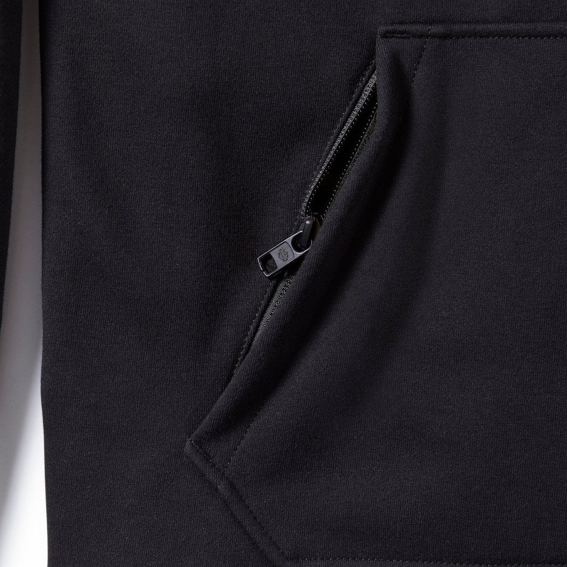 - Kangaroo-style, hand-warmer pockets with hidden zipper stash