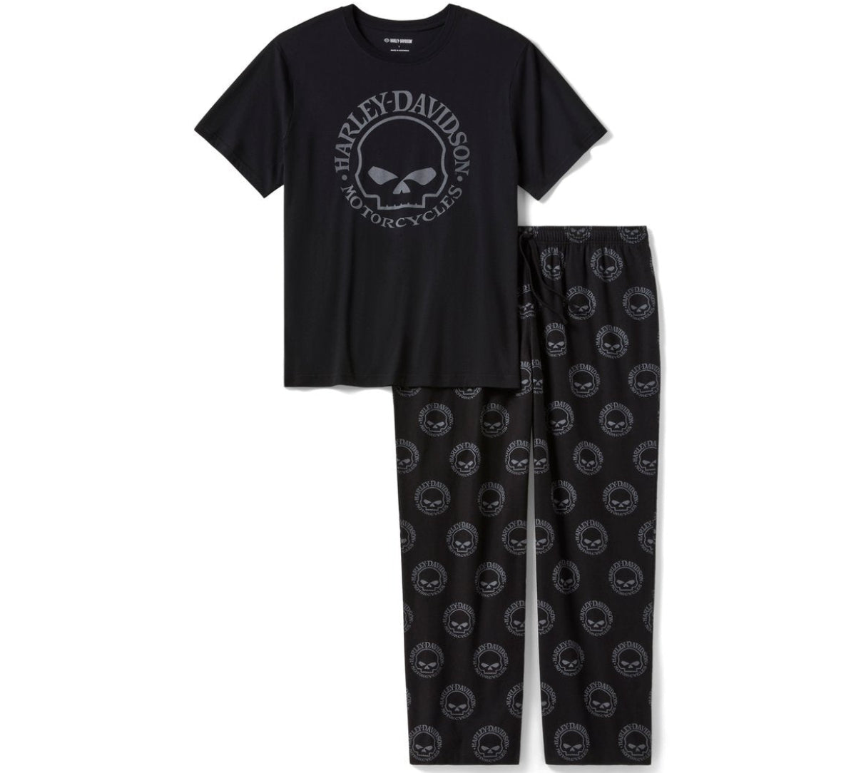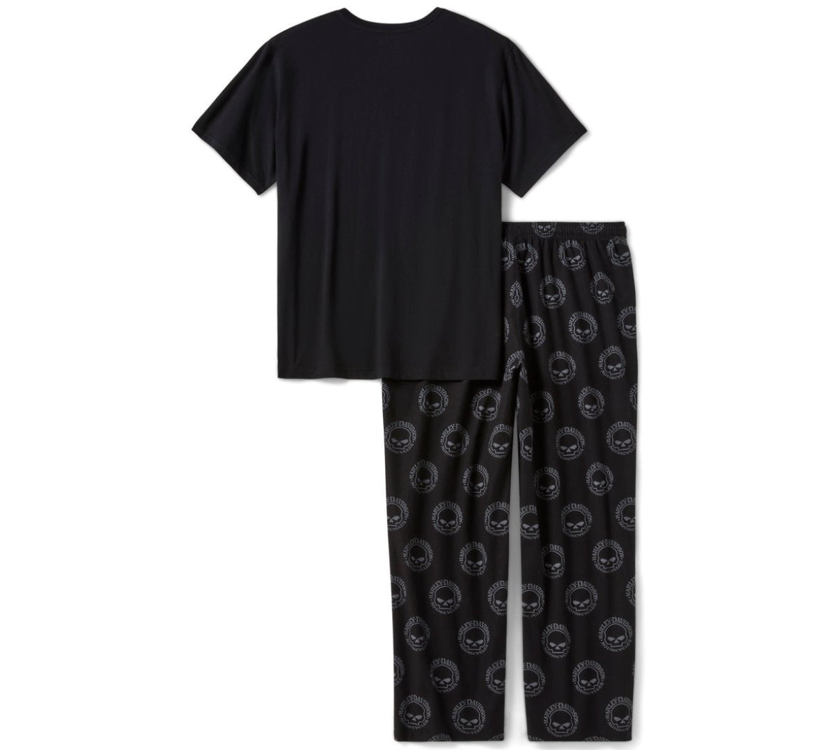 Harley-Davidson Men's Willie G Skull Short Sleeve Shirt/ Pants Pajama Set, Black 96793-25VM