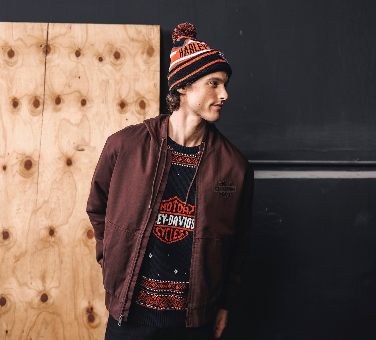 Stay warm with authentic Harley-Davidson style. This premium acrylic knit beanie features bold orange and black striping with custom intarsia graphics and an embroidered patch for genuine brand authenticity. The signature knit pom adds classic appeal, while the one-size-fits-most design ensures a comfortable fit for any rider. Perfect for cooler rides or casual wear around town.