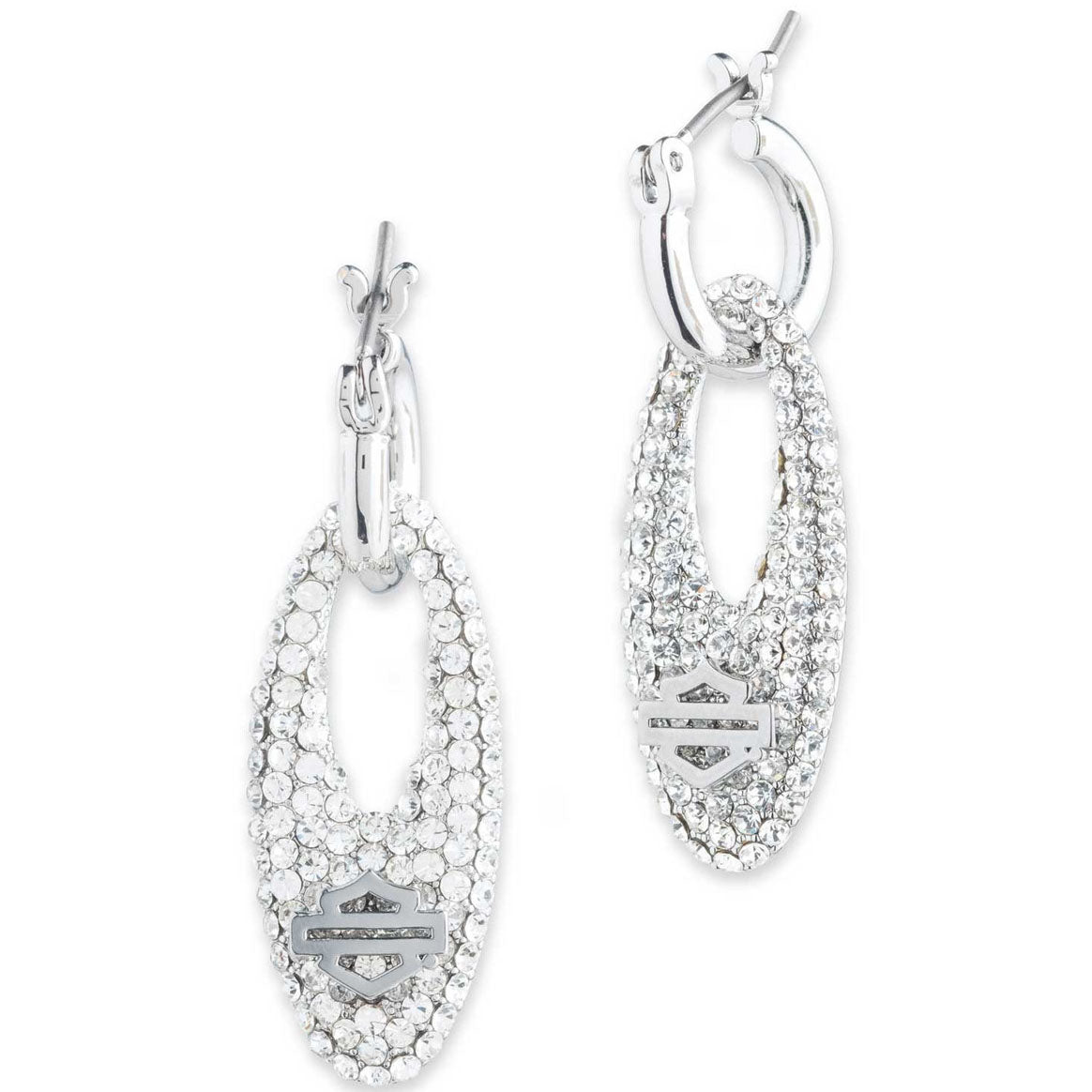 Harley-Davidson Women's Bar & Shield Bling oval Drop Hoop Earrings, Silver 34G00204