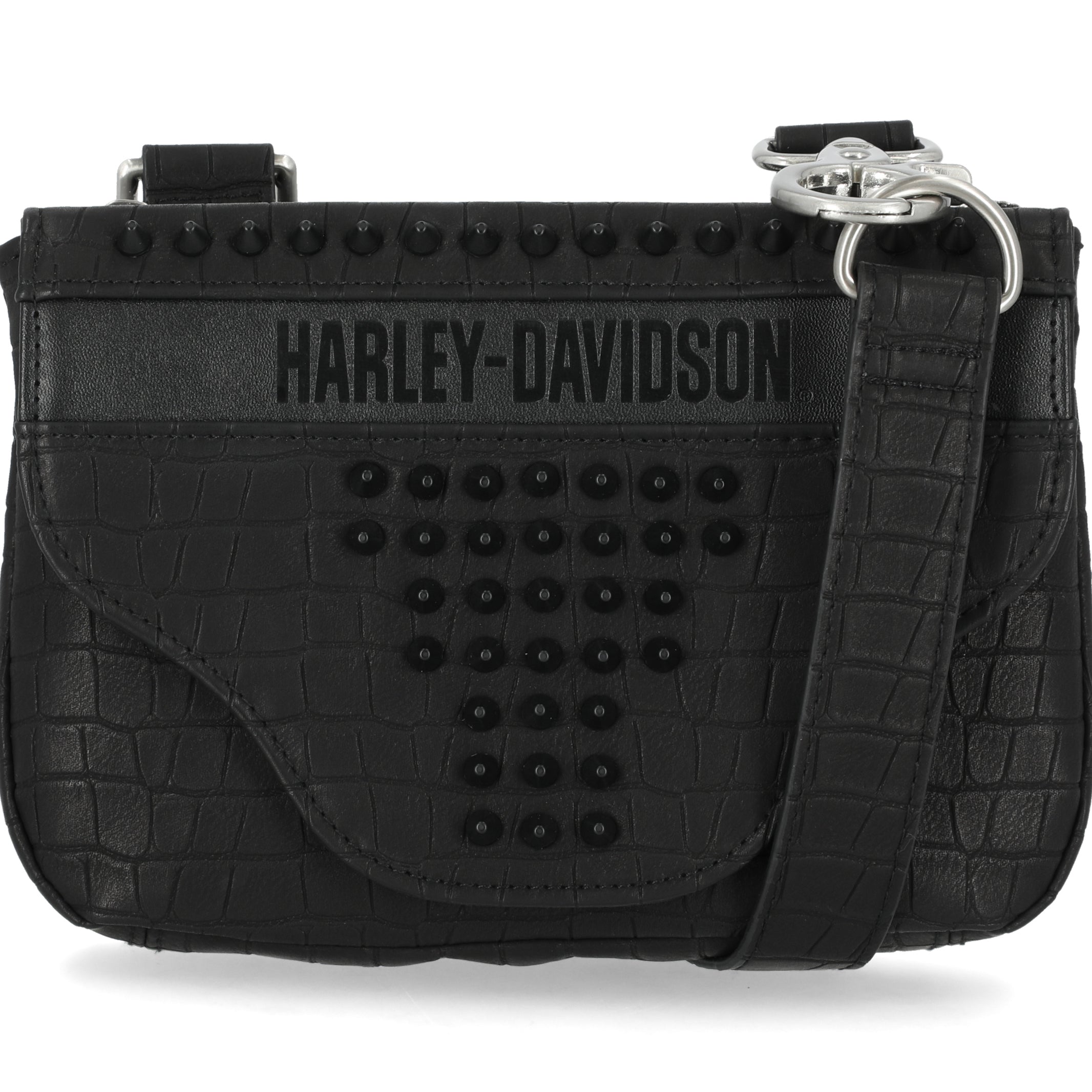 Harley-Davidson Women's Cone Studded Croco PU Hip Bag, Matte Black MHW117/08