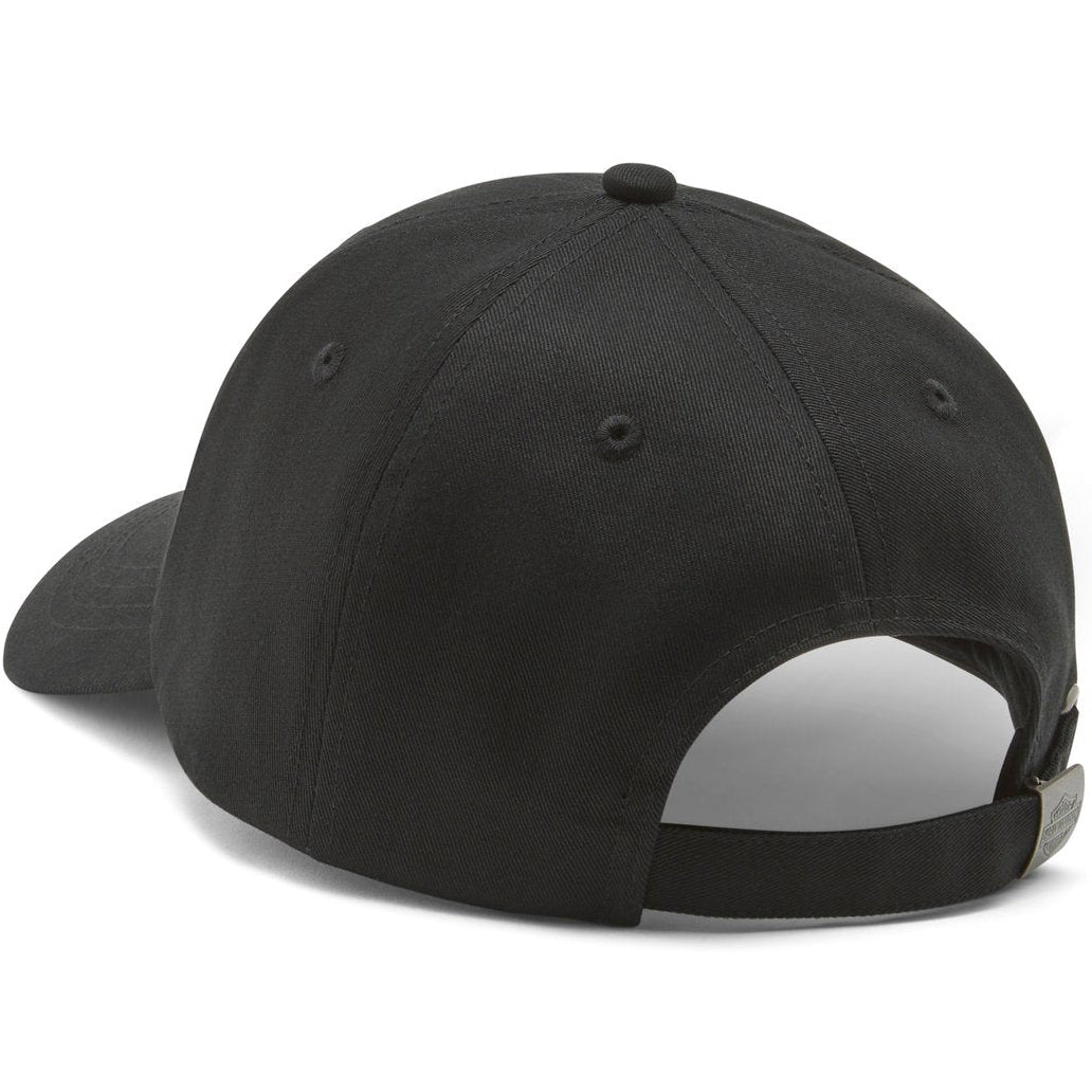 Crafted from premium 100% cotton twill, this women's strapback cap delivers durability and comfort for everyday wear. The adjustable branded metal slider ensures a customized fit, while high-density embroidery layered over direct embroidery creates a bold, dimensional look that showcases authentic Harley-Davidson branding. Built to withstand the elements and maintain its shape, this essential cap combines quality construction with timeless style for riders and enthusiasts alike.