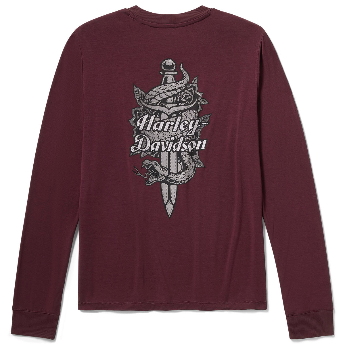 Harley-Davidson Women's Serpent Rose Embellished Bling Long Sleeve Shit, Dark Red 96842-25VW