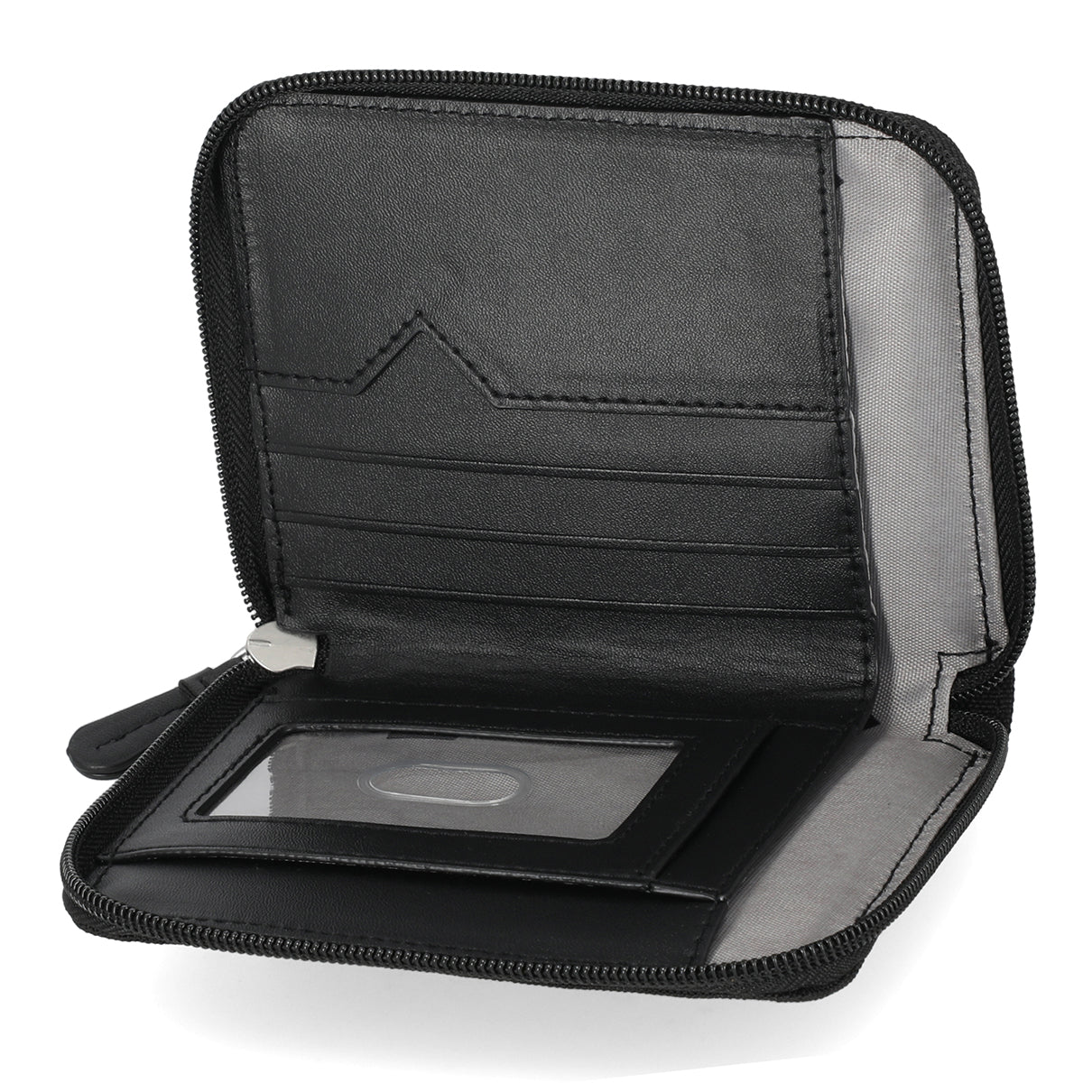 - Interior font slip pockets, interior credit card slots