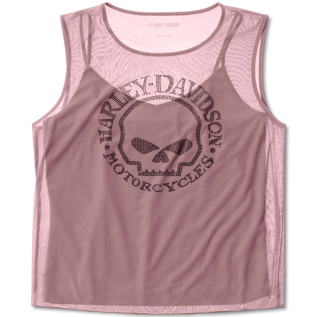 Harley-Davidson Women's Willie G. Skull Embellished Bling Mesh Top, Mauve Rose 96340-26VW