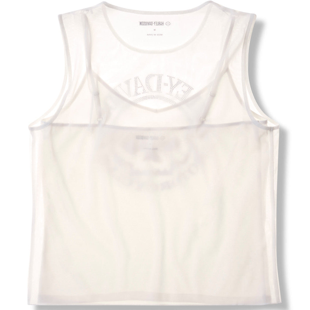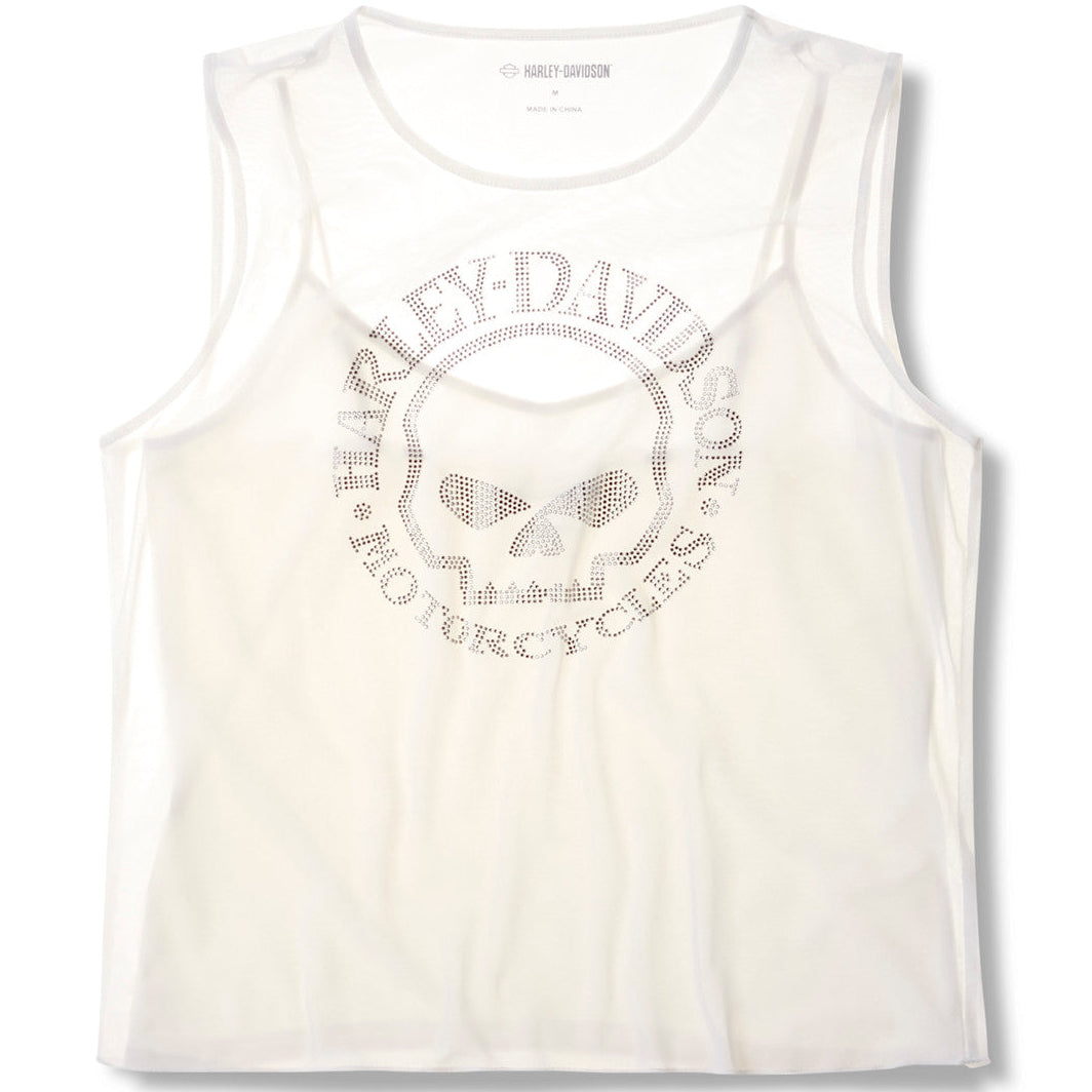 Harley-Davidson Women's Willie G. Skull Embellished Bling Mesh Top, White 96338-26VW