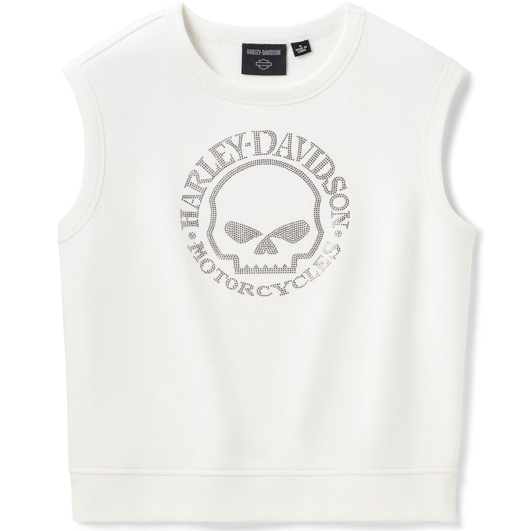 Harley-Davidson Women's Willie G. Skull Embellished Bling Sleeveless Crew Shirt, White 96305-26VW